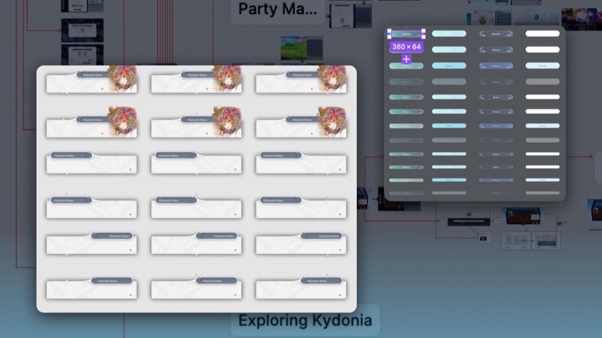 Instead of designing for fixed use cases, I defined scalable base components with structured variants, allowing elements such as dialogue and inventory to adapt across multiple states, layouts, and contexts. Dialogue components accommodate different directional placements and character configurations; inventory systems scale across categorized and non-categorized formats.